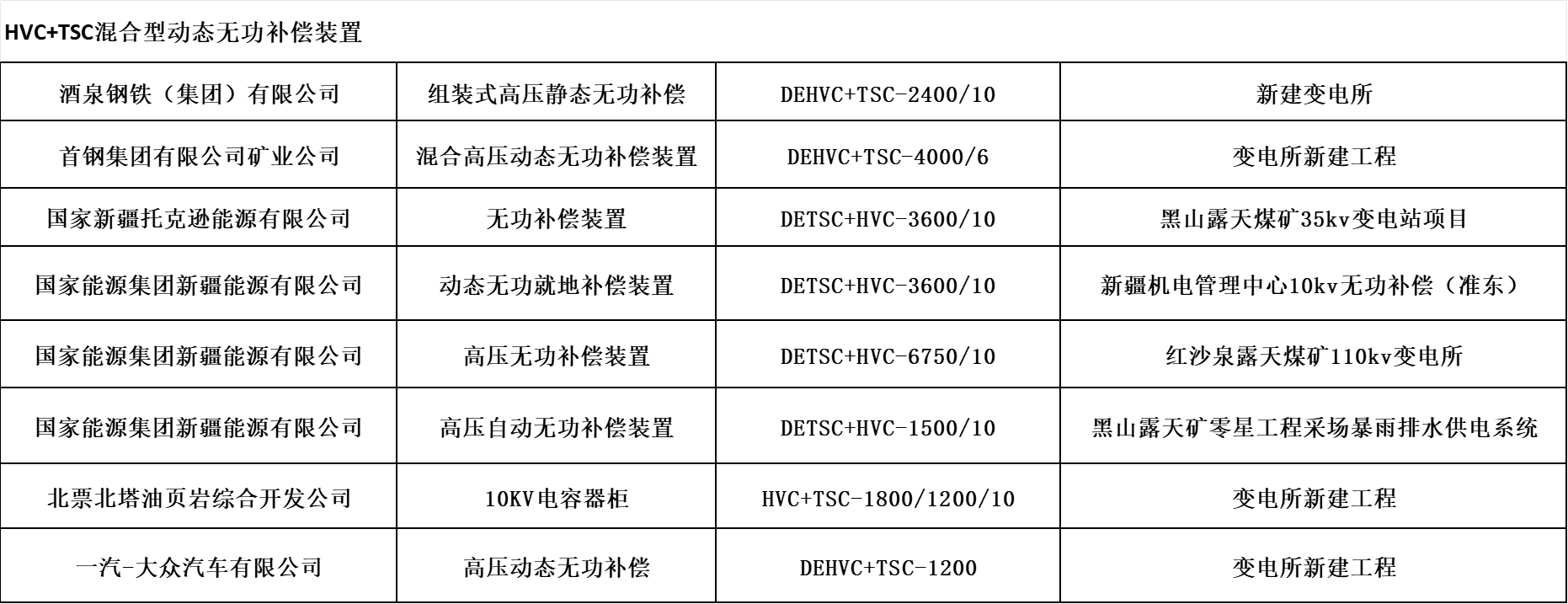 高壓HVC+TSC動態(tài)無功功率補(bǔ)償裝置廣泛應(yīng)用于高壓交直流輸變電系統(tǒng)和冶金、煤炭、港口門機(jī)、電氣化鐵路、重型機(jī)械制造等工業(yè)、交通沖擊性負(fù)荷配電網(wǎng)中。其主要作用就是對沖擊性負(fù)荷、時變負(fù)荷能夠?qū)崟r監(jiān)測、動態(tài)補(bǔ)償,實現(xiàn)功率因數(shù)補(bǔ)償至0.9以上,穩(wěn)定系統(tǒng)電壓,減少供電系統(tǒng)的網(wǎng)絡(luò)損耗,提高電能質(zhì)量等顯著特點,可以給用戶帶來巨大的經(jīng)濟(jì)效益和社會效益。