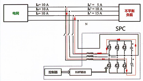 DESPC三相負(fù)荷不平衡自動(dòng)調(diào)節(jié)裝置綜合利用IGBT技術(shù)、SVG技術(shù)、電力電子技術(shù)等多種技術(shù)融合,裝置利用采樣電路實(shí)時(shí)采集低壓配電線路的三相電壓、三相電流等運(yùn)行參數(shù),通過模型運(yùn)算計(jì)算出三相間的不平衡負(fù)荷和需要補(bǔ)償?shù)碾娏鳎缓蟾鶕?jù)裝置設(shè)定的值來控制PWM信號發(fā)生器發(fā)出控制信號給內(nèi)部的IGBT使逆變器產(chǎn)生滿足要求的電流信號。最終由逆變器產(chǎn)生一個(gè)滿足要求的電流信號送入到系統(tǒng)中,實(shí)現(xiàn)三相符合平衡調(diào)節(jié)。三相負(fù)荷不平衡自動(dòng)調(diào)節(jié)裝置主要用于低壓配電用戶側(cè),治理三相電流不平衡,相電壓偏低和補(bǔ)償無功,優(yōu)化電能質(zhì)量。