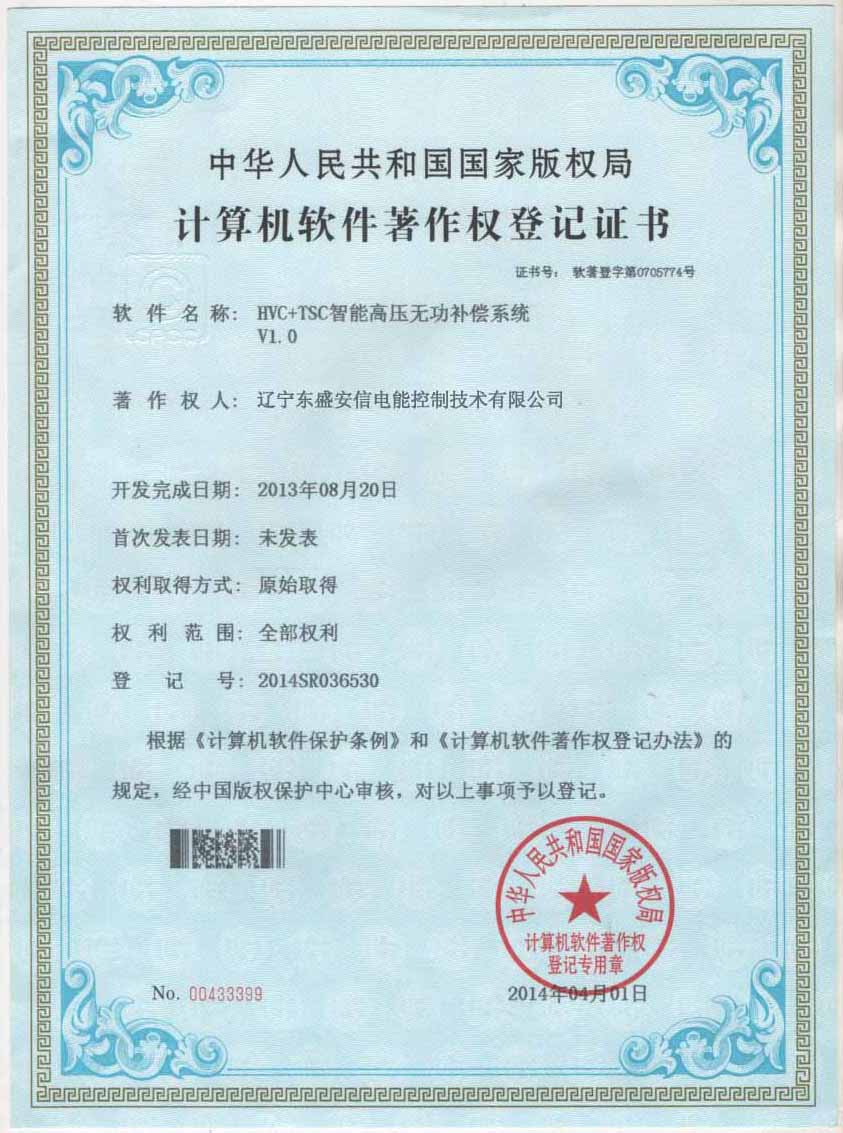 遼寧東盛安信電能控制技術有限公司自主研發(fā)系列產(chǎn)品獲得國家專利及著作權。